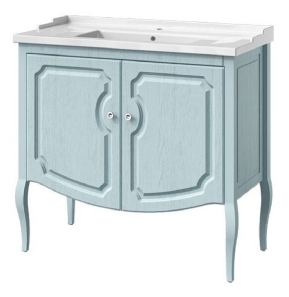 Тумба под раковину Caprigo Aspetto Firenze 90 34113, цвет TК-663 денимОсновные характеристики:Размер тумбы с раковиной: Ш93хГ46,8хВ89,5 смУстановка: напольная2 распашных фасадаМатериал фасада: МДФ, влагостойкая ламинацияМатериал корпуса: МДФ, влагостойкая ламинацияНожки: массив бука, эмальПолки: ЛДСП, 1штПетли BlumВнутренняя отделка : ламинированиеСрок изготовления: 21 рабочий деньВес: 26 кгДополнительно комплектуется:Раковина для тумбы Caprigo Y-90B